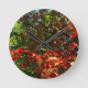 An image depicting the seasonal turning of Japanese maple leaves from green to brilliant red.