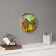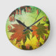 Japanese maple leaf and script fall red green round clock