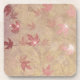 A classy print featuring red, pink and gold japanese maple leaves emitting sparkles. Set on a burnished gold background with faint decorative, leafy scroll design.