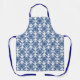 Apron in a classic Japanese kimono pattern of stylised, four-way, medallions of leaves and flowers in deep cobalt blue on a white background