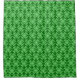 Shower curtain in a classic Japanese kimono pattern of stylised, four-way, medallions of leaves and flowers in light green on a dark jade green background