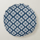 Japanese Navy Blue Ivory Floral Geometric Pattern Round Cushion