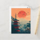This artwork showcases a tranquil Japanese pagoda set within a peaceful forest, illustrated in a vintage-inspired style. The scene blends traditional architecture with natural beauty, creating a calm and nostalgic atmosphere. Ideal for Japan lovers, vintage art fans, and anyone drawn to serene Asian landscapes.