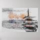 Japanese Pagoda with Mount Fuji – Minimalist Watercolor Art Print