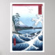 Japanese Poster with a Refurbished Ukiyo-e Painting showing a view of Mount Fuji from Satta Point in the Suruga Bay, with breaking waves in the foreground. This Woodblock print was created by the Japanese Artist Hiroshige Ando 1797-1858