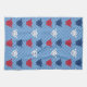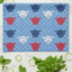 Wallpaper print adapted from an antique Japanese textile design - deep red, white and navy blue rabbits on a light blue and aqua wallpaper background