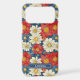Customise this gorgeous red and cream on blue Japanese Chiyogami floral design iPhone 17 pro max case with your your name in a trendy modern CAP font in cream on blue. It's so beautiful!