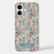 Customize this gorgeous teal, cream and pink Japanese Sakura Geisha and cherry blossoms on soft teal design iPhone 16 case with your your name in a trendy modern CAP font in cream on light teal. It's so delicate and beautiful!