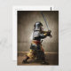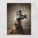 A striking colourized photo of a Japanese folk dressed in full traditional Japanese armour, wielding a katana sword in a fighting pose.
