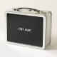 This is a standard metal lunchbox that appears to work just fine. We designed this box ourselves with an uploaded photo and custom text on the front and back. It looks absolutely beautiful except the front of the lunchbox is not centered like it shows in the photo. The print borders don't align with the inset flat part of the box where the preview photo online showed it perfectly centered in there. The back looks nice and centered though.
