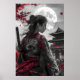 A beautiful illustration of a Japanese samurai woman with a katana and traditional tattoos, sitting under the full moon. Calm, cinematic composition inspired by Japanese culture and tattoo art. Perfect for posters and prints.