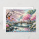 Japanese Scenery with Bridge, Koi and Sakura trees Postcard