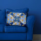 Introducing our Japanese-style blue and gold accent pillow, a stunning piece that combines art and elegance to elevate your home decor to new heights. This exquisite monogrammed decorative pillow features delicate circle patterns in shades of blue, intertwined with golden leaf motifs that shimmer in the light. Crafted with meticulous attention to detail, this pillow boasts a dramatic blue background that sets the stage for its captivating design.