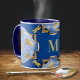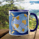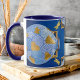 Introducing our Japanese-style blue and gold mug, a stunning piece that combines art and elegance to elevate your home decor to new heights. This exquisite monogrammed decorative coffee mug features delicate circle patterns in shades of blue, intertwined with golden leaf motifs that shimmer in the light. Crafted with meticulous attention to detail, this cup boasts a dramatic blue background that sets the stage for its captivating design.