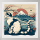 Japanese Style Cat Art Poster for Cat Lovers