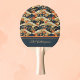 Japanese Style Retro Teal Floral and Clouds Print Ping Pong Paddle