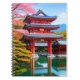 Trees and nature surround the Japanese temple and reflects off the nearby water art.