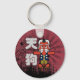 This red and black button keychain features a cartoon drawing of a Daitengu, one of the yokai monsters from the mythology of Japan. The Daitengu is one of the two types of tengu, and is easily recognized by its long nose and red skin. Although tengu can be vicious, this particular one is rather cute. The large kanji characters in the background say "Tengu" in Japanese.