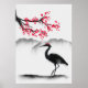 Hand painted traditional Japanese themed wall art with sakura and heron