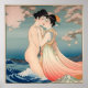 Japanese vintage art,silk paper painting,lovers Kiss,inspired by Hokusai,Asian vintage art,rustic art,antique art,trending,modern old, love,lovers