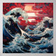 Elevate your space with the captivating beauty of Japanese wave art. This stunning poster features a mesmerising depiction of serene ocean waves, seamlessly blending the tranquillity of nature with the iconic Japanese influence. The graceful curves and vibrant colours of the waves create a sense of harmony and peace, making it the perfect addition to any room decor.