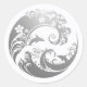 Japanese Wave & Hibiscus Silver Classic Round Sticker
