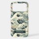 Make a statement with this iphone 17 pro max phone case that features rolling Japanese waves in multiple shades of teal blue and splashes of earth tones. It's modern yet traditional. The pattern represents surges of good luck, peace, and eternal resilience. It becomes uniquely yours with your name in a CAP font in white on dark teal.
