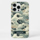 Make a statement with this iphone 16 pro max phone case that features rolling Japanese waves in multiple shades of teal blue and splashes of earth tones. It's modern yet traditional. The pattern represents surges of good luck, peace, and eternal resilience. It becomes uniquely yours with your name in a CAP font in white on dark teal.