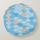 Japanese Waves Pattern Light Blue Beige White Round Cushion