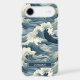 Make a statement with this iphone 17 air phone case that features rolling Japanese waves in multiple shades of teal blue. It's modern yet traditional. The pattern represents surges of good luck, peace, and eternal resilience. It becomes uniquely yours with your name in a CAP font in white on dark teal.