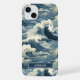 Make a statement with this iphone 15 plus phone case that features rolling Japanese waves in multiple shades of teal blue. It's modern yet traditional. The pattern represents surges of good luck, peace, and eternal resilience. It becomes uniquely yours with your name in a CAP font in white on dark teal.