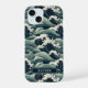 Japanese Waves Print Monogrammed iPhone 15 Case