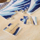 Vintage 19th century Japanese illustration featuring ocean waves and fishing boats.