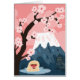 Japan-inspired cartoon showing snow monkey, cherry blossoms, and Mount Fuji.