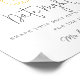 My thoughts on this product was excellent. Well printed in a gloss finishing and just the size l ordered. It arrived in good condition and am overall satisfied with the product. The printing turned out great. I was quite surprised with the finishing touch to the poster. The semi gloss was just right and a perfect size to display at the wedding.