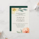 Bold vintage style garden flowers and botanical greenery arrangements on dove and emerald background, wedding invitation. Customise text, font style, colour and size.