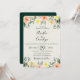Watercolor garden flowers and botanical greenery arrangements on dove and emerald background, wedding invitation. Customise text, font style, colour and size.