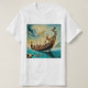 The A.I. created interpretation of a majestic sailing ship know and the Argo, with an exaggerated curved hull and a billowing sail dominates the scene with classical Greek architecture silhouetted in the background. Jason and his ragged Argonauts, appear engaged in a dynamic scene aboard the ship, which invokes a sense of mythological adventure.