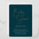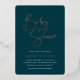 Invite guests to celebrate the mother to be with these modern and minimal baby shower invitations with luxe foil accents. Simple design features "baby shower" in casual rose gold foil handwritten script, with your event details beneath on a dark jewel tone emerald green background.