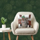 There's a squirrel in your livingroom! Or bedroom or deck (with outdoor fabric)... This pillow features a photo of a jaunty squirrel who appears to be wearing a fun elven hat while snow falls all around. I took this photo of a squirrel who loved to hang around our deck in the snow, and I added a little graphical "hat" for some Christmas fun. I hope you'll enjoy this snowy elf of a squirrel in your home.