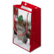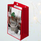 This snowy squirrel with a jaunty elf hat would love to help you wrap up your gift-giving with warmth and whimsy. It might be cold outside but his woodland creature just might warm the heart of a loved one. The sides of the bag are red.