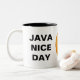 Funny mug with a best wishes message to celebrate great coffee, and the 100% Arabica of Java.