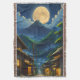 The moon shines over a small town in Java, Indonesia, with a large mountain in the background.