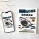 I chose the larger postcard sized one, as the font would be large for older eyes, and customised it keeping the Rail Ticket theme on the front, with venue address/date/time of party, and on the back I added another steam train and various 80 speed limit/rail signages. The trick is not to overdo it or it looks too busy. I also added at one end of the front side, a word of thanks from the birthday boy.