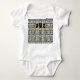 This baby bodysuit has a Bauhaus design of ovals four layers thick on a field of white.