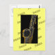 Jazz illustration . . . a saxophone in black-and-white with gold highlights and black background on yellow matte with the word "jazz". Great for jazz lovers!