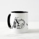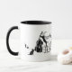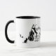 Two cool cats in silhouette work hard at playing double bass for two dancing mice with music notes flying around on a two-toned coffee mug.