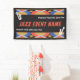 Jazz music event banner with your custom event information. Art deco style borders at the top and bottom with saxophone silhouettes and a black background. Great for jazz festival, recital, club.