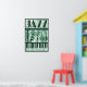 Dark green jazz music poster with a variety of musical instruments including a clarinet, upright bass, old microphone, trumpet, piano, and a drumstick. Great for the music lover, teacher, or student.