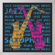 Jazz and blues saxophone, poster for jazz and music fans, typographic design style.